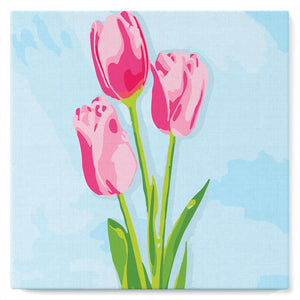 Mini Schilderen op Nummer met Frame - 3 roze tulpen