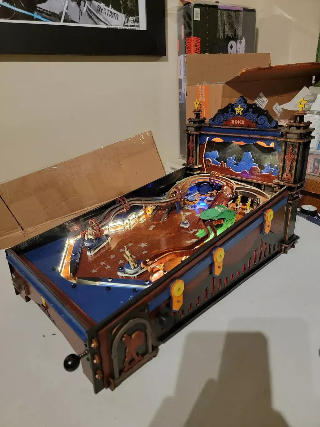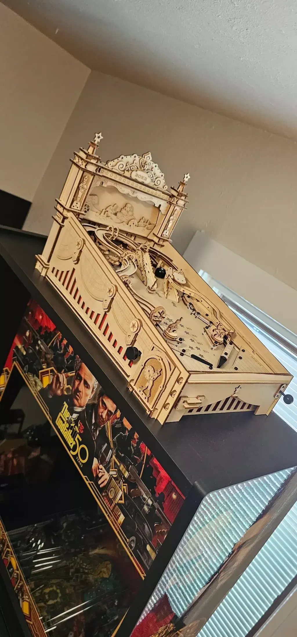 Deze houten 3D-puzzel is een bouwmodel voor volwassenen, geïnspireerd op retro flipperkasten. Als je van klassieke flipperkastspellen houdt, maak je dan klaar om de gloriedagen van de jaren 90 te herbeleven met dit vintage model.