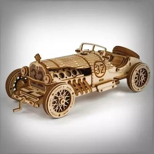 Dit schaalmodel van een Grand Prix-auto uit de jaren 1910 is een 3D-houten puzzel die een iconische sportwagen nabootst. Met realistische details en authentieke structuren is deze puzzel een modelbouwproject voor volwassenen dat geduld en vaardigheid vereist.