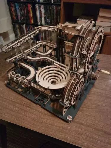 De 3D Puzzel Marmeren Nachtstad is een combinatie van wetenschap en machines, een knikkerbaan die een wilde race van knikkers langs de banen biedt. Dit zelf samengestelde houten model, met zijn lange baan van 2,5 meter en transparant acrylmateriaal, is perfect voor een creatieve ervaring van mechanische precisie.