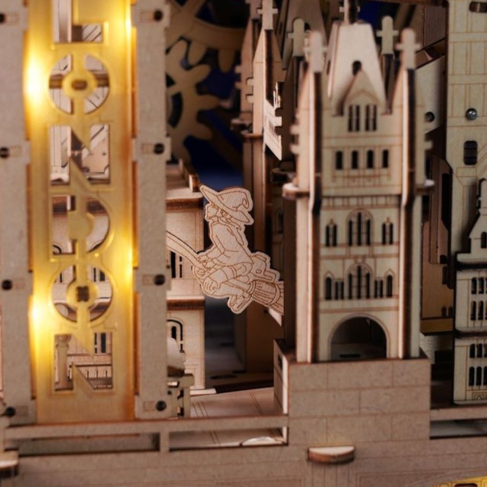 Met deze 3D houten puzzel bouw je een dynamisch stadslandschap van Londen, waarin metalen knikkers door beroemde bezienswaardigheden zoals Big Ben, Tower Bridge en het London Eye rollen. Met 431 stukken en een door zwaartekracht aangedreven knikkerbaan via USB-C, biedt het een boeiende combinatie van mechanische actie en hands-on assemblage. Een fascinerende uitdaging die een kinetische display wordt, perfect voor bureaudecoratie of interactieve pret zodra het is voltooid.