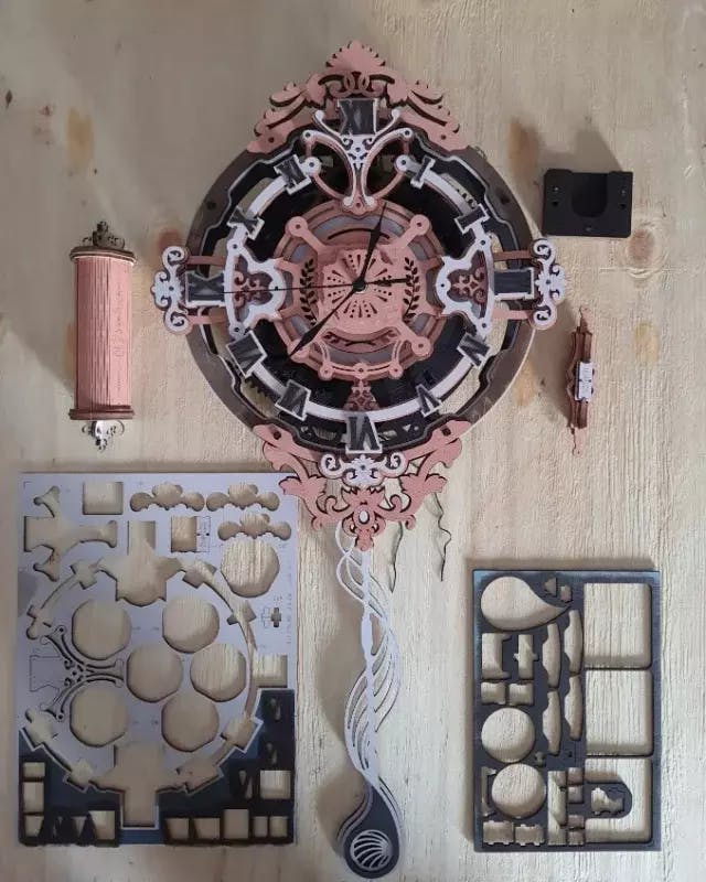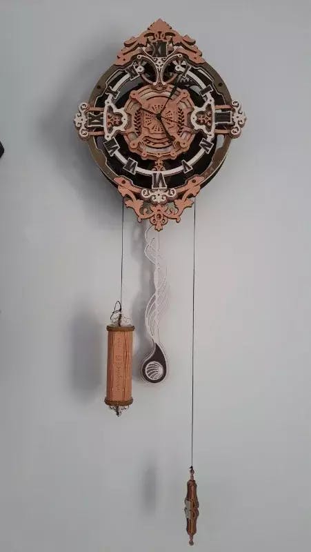 Deze zelf te monteren muurklok is een perfecte combinatie van machine en romantiek. Volledig aangedreven door tandwielen, geeft het je de exacte tijd aan en voegt het een esthetisch tintje toe aan je ruimte.
