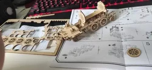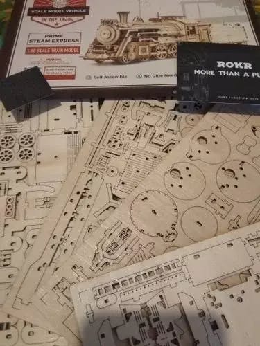 Dit schaalmodel van de oude stoomtrein uit de jaren 1860 is een 3D houten puzzel die een elegante decoratie voor je huis vormt. Deze 3D puzzel is een bouwpakket voor volwassenen met realistische details zoals een stoomfluit, wielen en een afneembare tender.