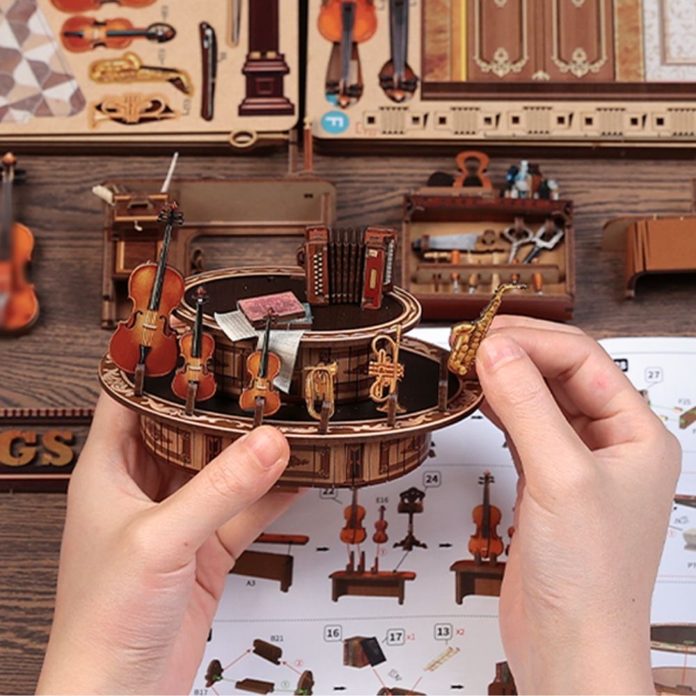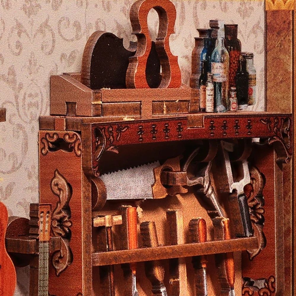 Bach Snaren vangt de tijdloze schoonheid van een Europees muziekatelier in miniatuurvorm. Geïnspireerd door stille avonden in oude stadjes, waar barokmelodieën door smalle straatjes zweven en warm licht weerkaatst op smeedijzeren balkons, brengt deze kleine werkplaats dat gevoel van elegantie tot leven. Binnen vind je charmante details, miniatuurinstrumenten en vintage bladmuziek die de wereld van klassieke vakmanschap oproepen. Dit miniatuur huisje biedt een verfijnde, sfeervolle blik op een plek waar muziek, traditie en artistiek vakmanschap samenkomen.