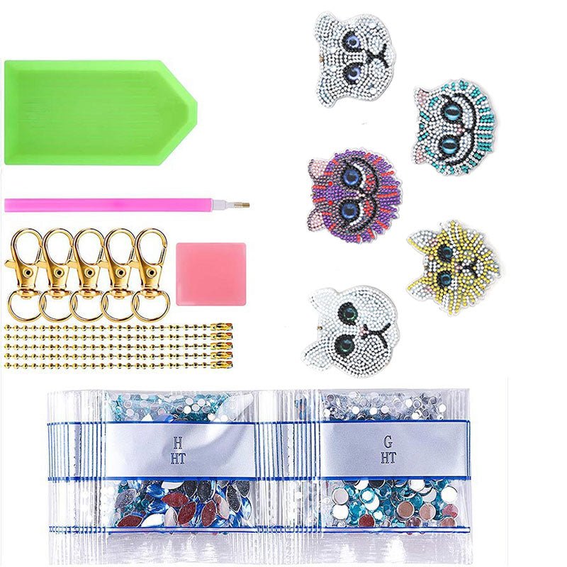 Sleutelhangers Diamond Painting 5D Kittens 5 Stuks