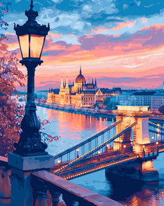 Diamond Painting - Boedapest bij Schemering reeds ingelijst