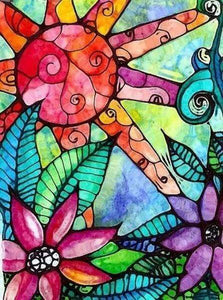Diamond Painting - Bloemen en zon gebrandschilderd glas