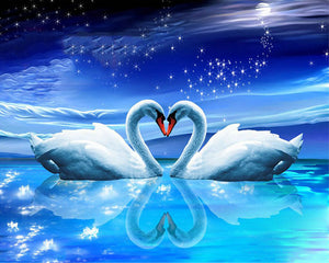 Diamond Painting - Hartvormige zwanen onder de Maan