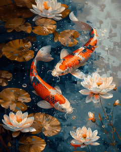 Diamond Painting - Vintage Koi Karper en Bloemen