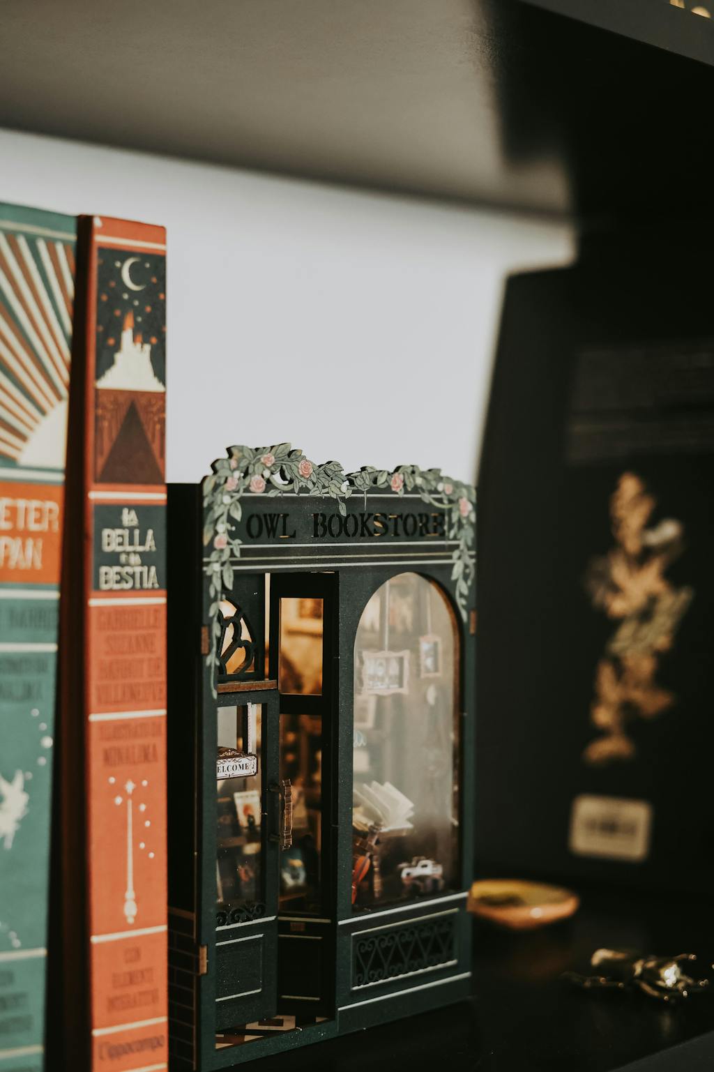 Een Book Nook is een doe-het-zelf miniatuur diorama project ontworpen om tussen de boeken op een plank te passen. Deze charmante DIY kits stellen je in staat om een kleine gedetailleerde scène te creëren die een magische en fantasierijke touch toevoegt aan je boekenkast of elke kamer in je huis. Perfect voor boekenliefhebbers, modelbouw enthousiastelingen en iedereen die van creatieve projecten houdt, Book Nooks transformeren je ruimte in een venster naar een andere wereld.