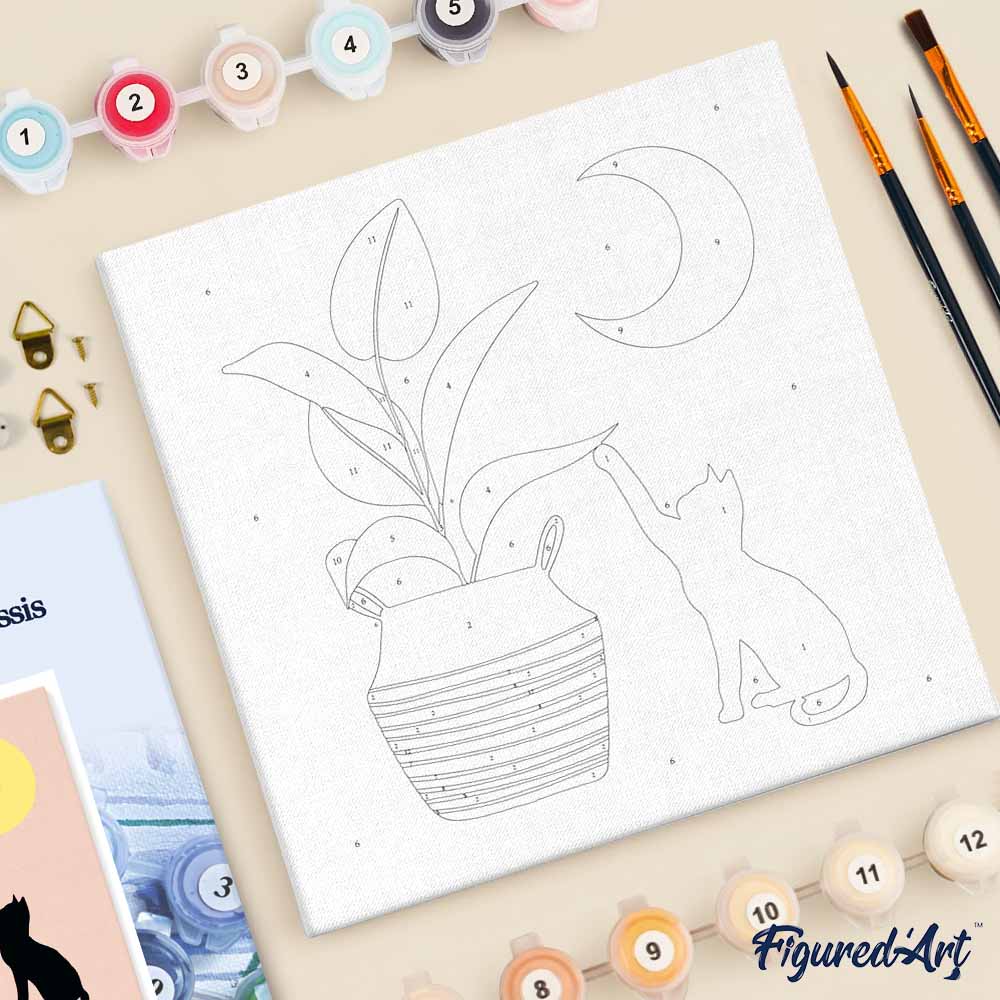 Model: Mini Schilderen op Nummer met Frame - Kitten en planten in het maanlicht