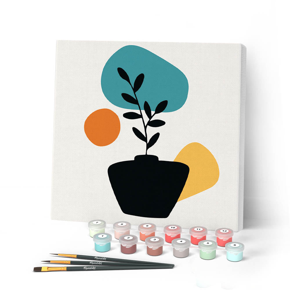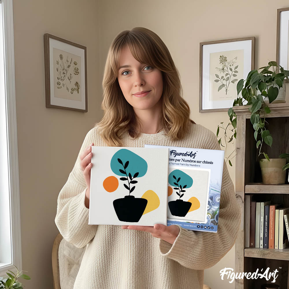 Model: Mini Schilderen op Nummer met Frame - Plant en zwarte pot