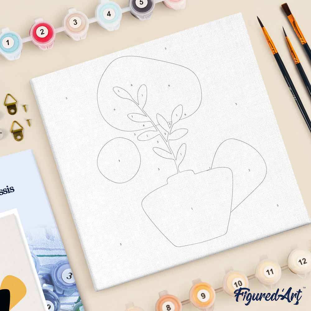 2) Je ontvangt een compleet pakket met genummerd canvas, genummerde potten verf, penselen en een foto van het verwachte resultaat om jou te gidsen. Laat de reis beginnen!