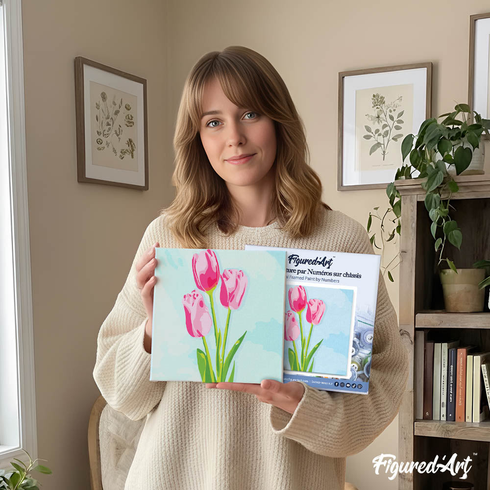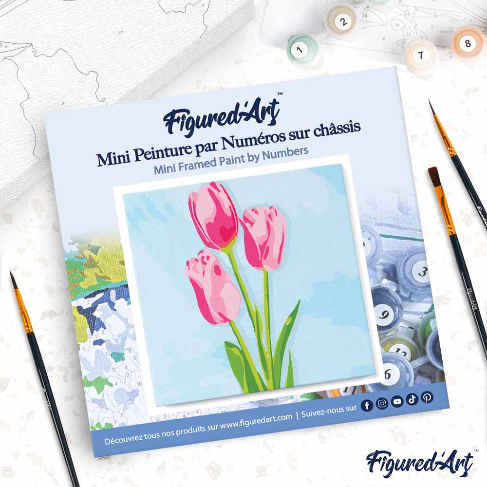 Model: Mini Schilderen op Nummer met Frame - Tulpen en blauwe hemel