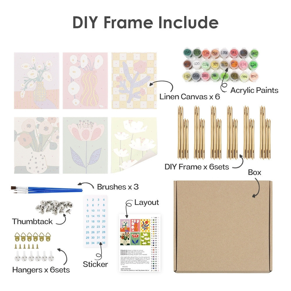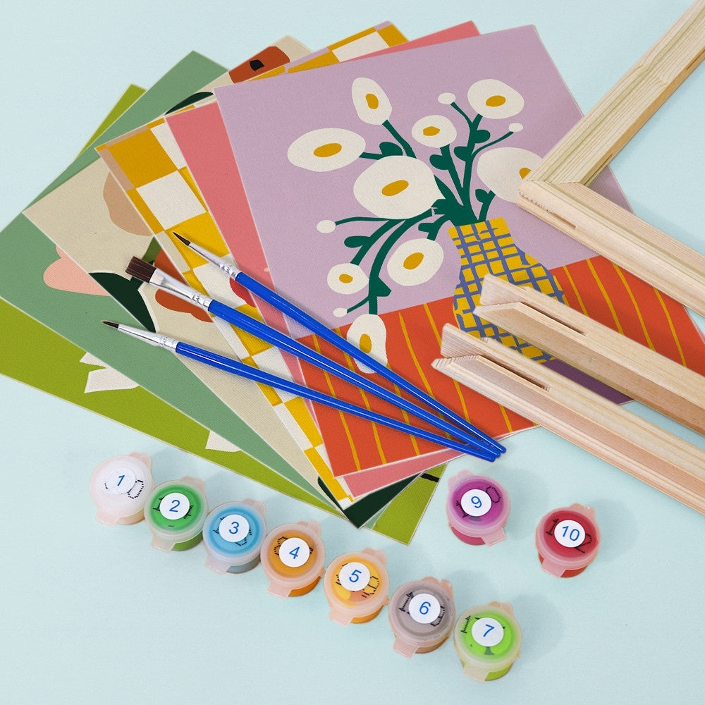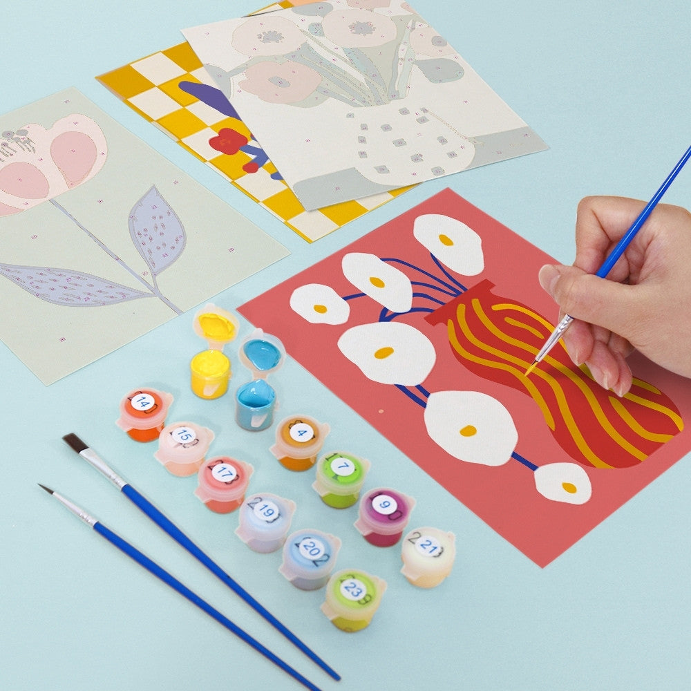 Ontdek het plezier van schilderen met onze Schilderen op nummer – Set van 6 doeken | Abstracte Bloemenvazen. Elke set bevat zes themadoeken, voor-gemengde acrylverf en alle benodigde tools. Volg de genummerde gids om te genieten van een ontspannende hobby en prachtige kunstwerken te creëren die je met trots kunt tonen of cadeau doen.