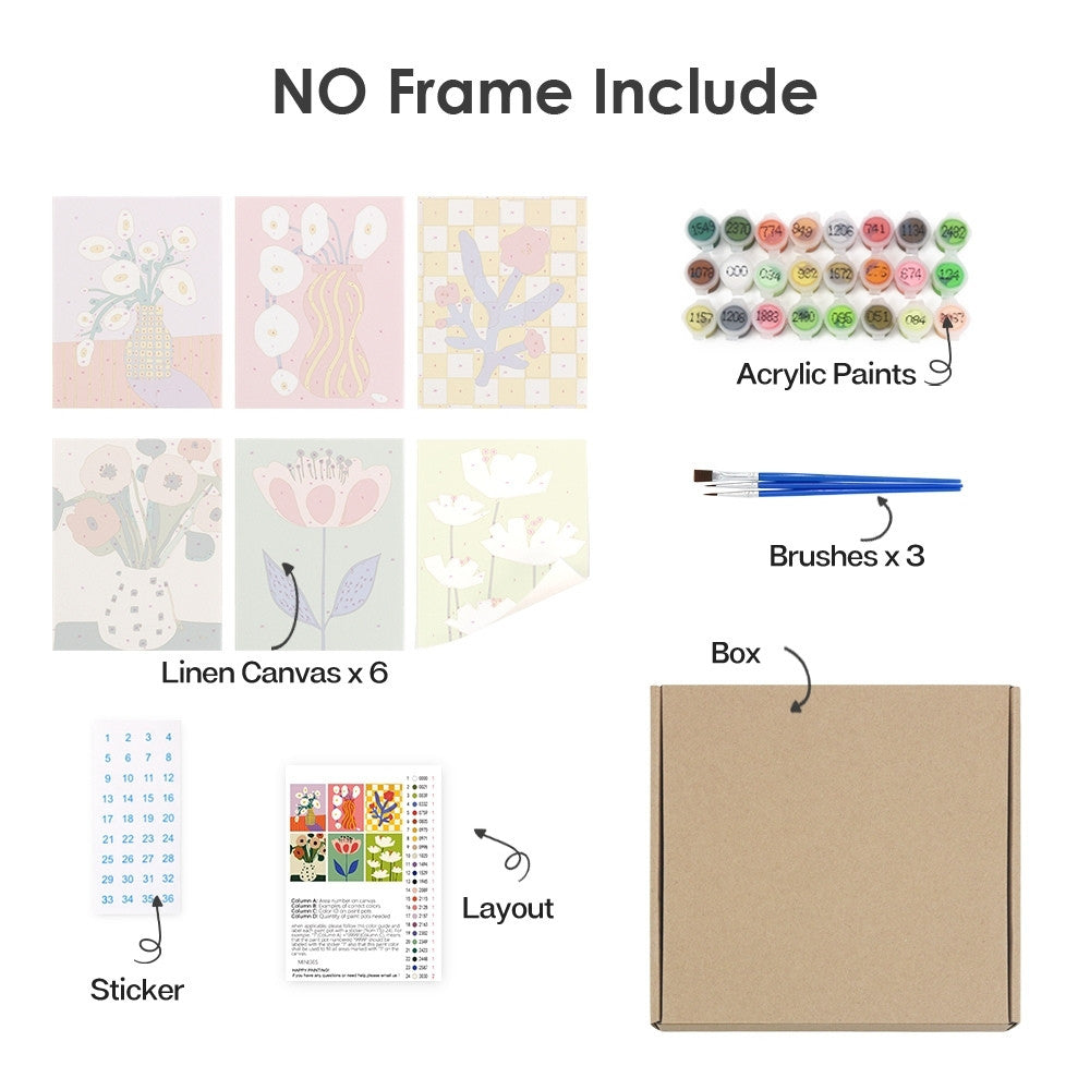Schilderen op nummer – Set van 6 doeken | Abstracte Bloemenvazen