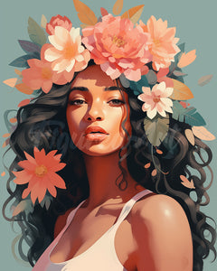 Diamond Painting - Gezicht en Bloemen