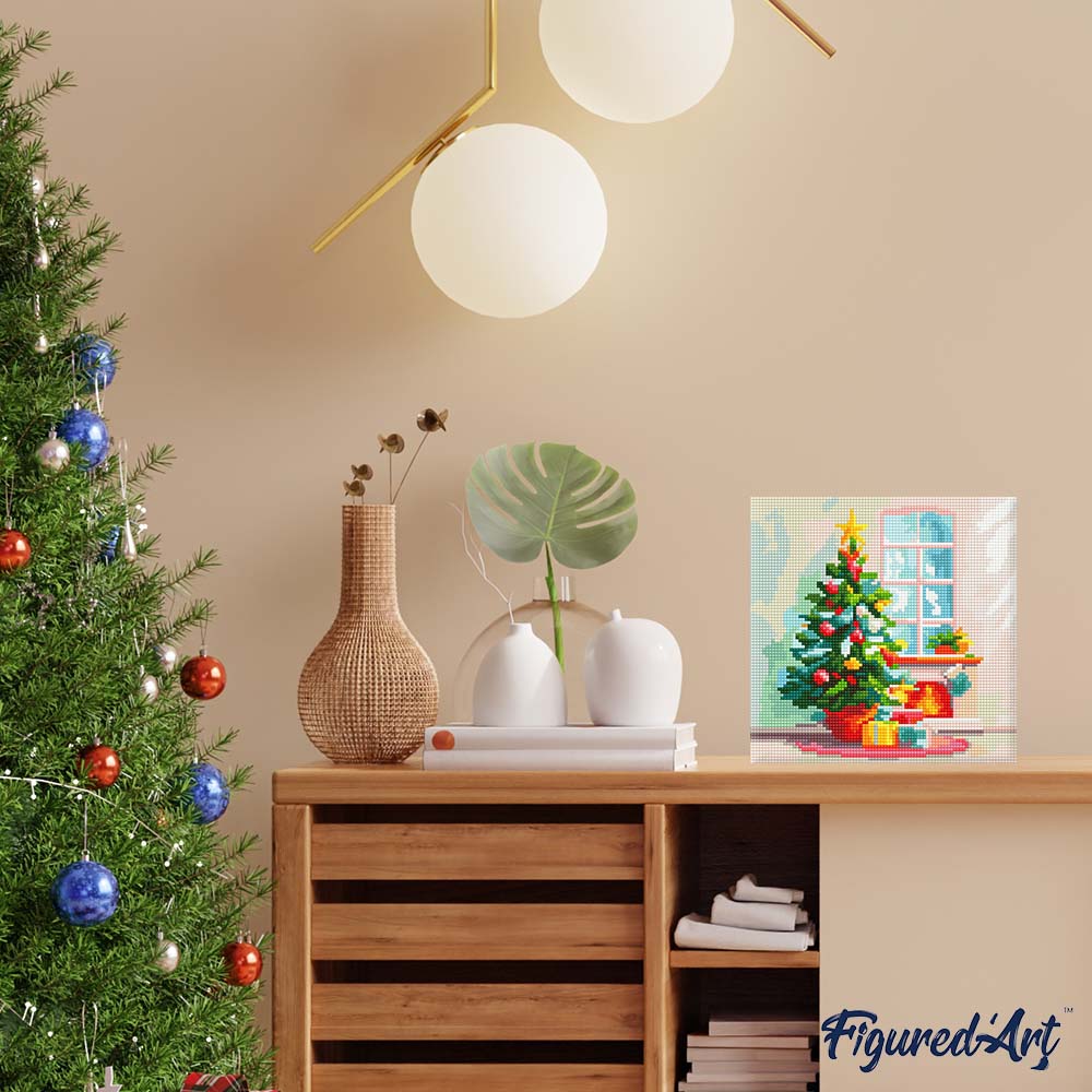 Mini Diamond Painting 25x25 cm - Kerstboom en open haard