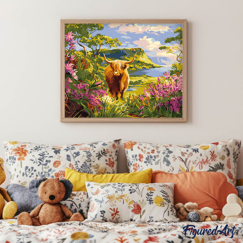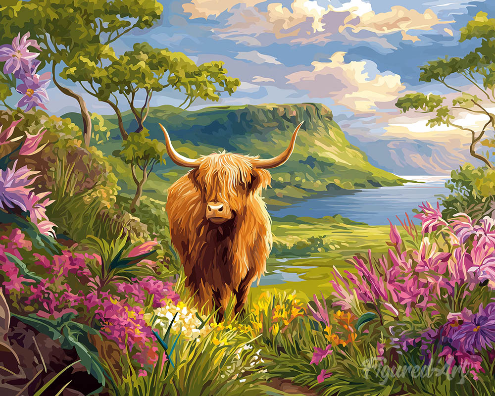 Model: Schotse Hooglander in de lentevallei