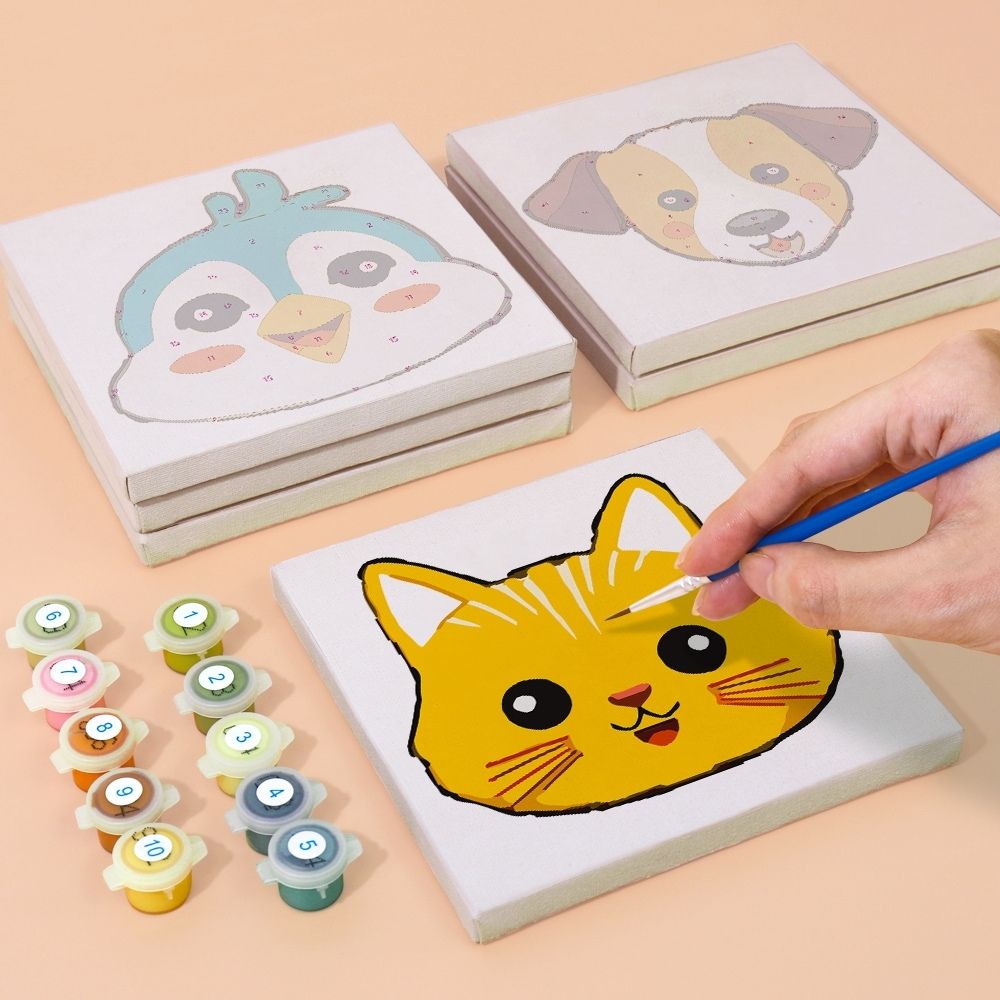 Ontdek het plezier van schilderen met onze Schilderen op nummer – Set van 6 doeken | Schattige Dierengezichten 3. Elke set bevat zes themadoeken, voor-gemengde acrylverf en alle benodigde tools. Volg de genummerde gids om te genieten van een ontspannende hobby en prachtige kunstwerken te creëren die je met trots kunt tonen of cadeau doen.