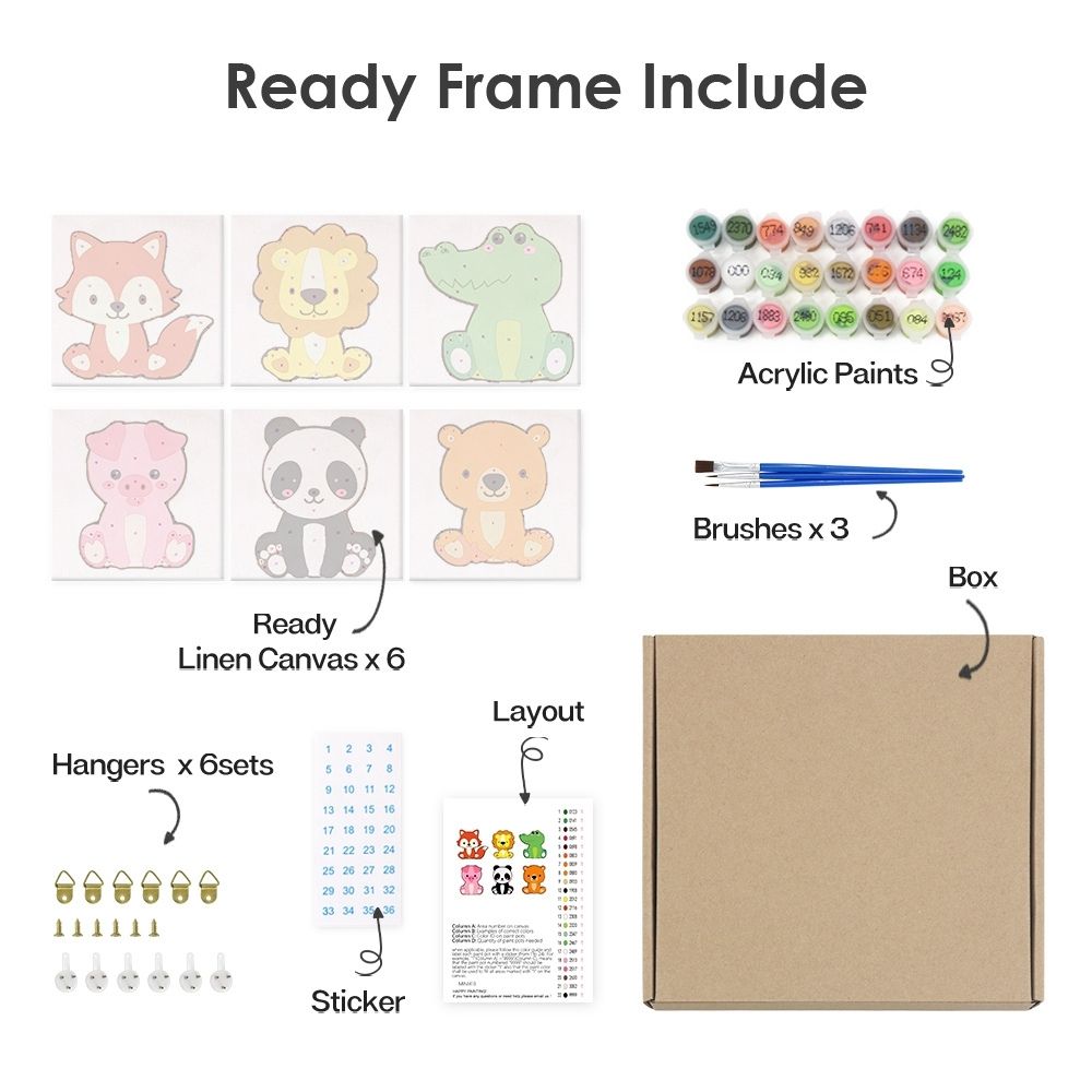 Schilderen op nummer – Set van 6 doeken | Schattige Dierfiguren