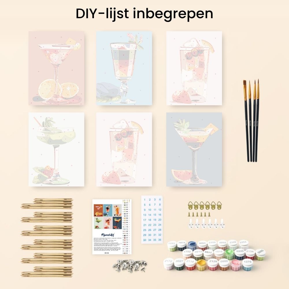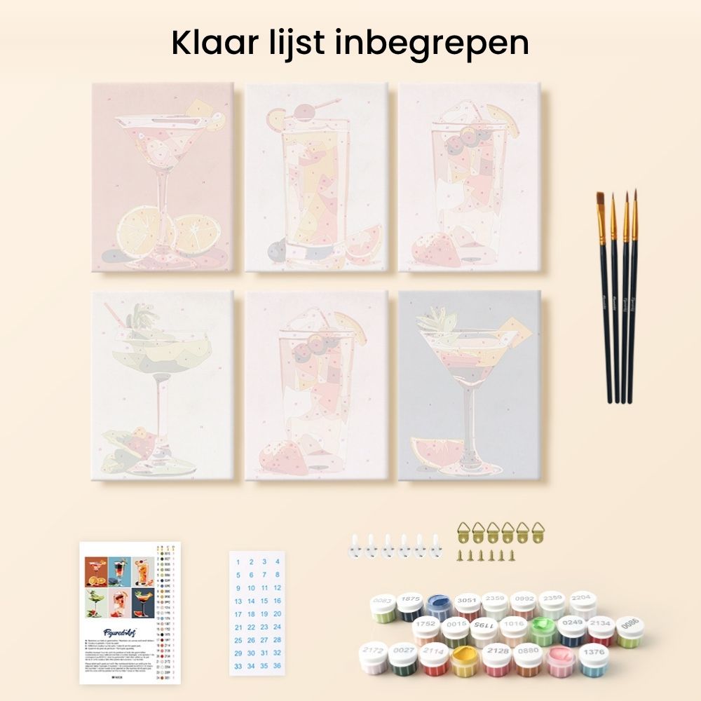 Mini Schilderen op Nummer 15x20cm (6 stuks) - Cocktailkunst