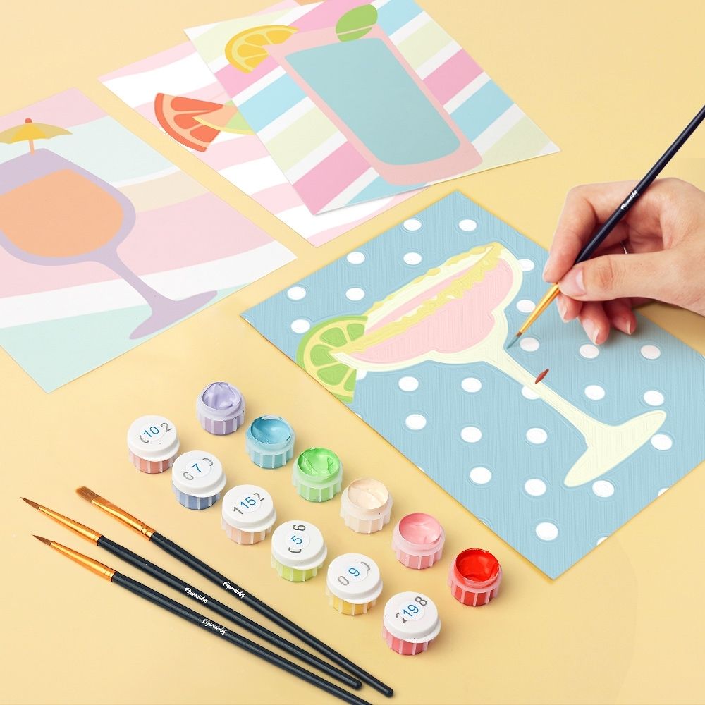 Deze mini schilder op nummer kits zijn een ideaal alternatief voor grote formaten: compact, praktisch en snel te voltooien. Perfect voor beginners en hobbyisten die kleine, creatieve projecten willen doen, zelfs als je weinig tijd hebt. Ook geweldig voor creatieve bijeenkomsten of schilderavonden met vrienden: iedereen kan zijn eigen mini-doek schilderen terwijl hij geniet van muziek en snacks.