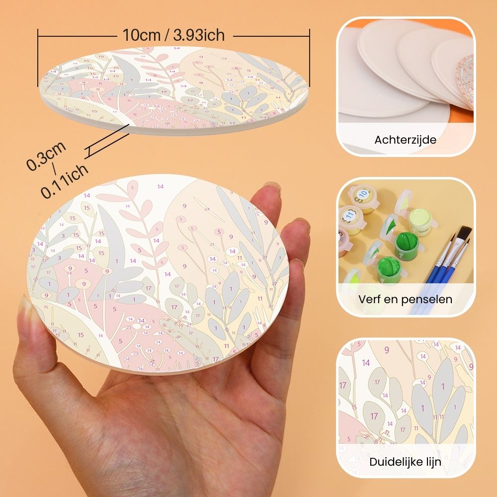 Schilderen op Nummer Onderzetters 15cm (6 stuks) - Modern Botanisch Ontwerp