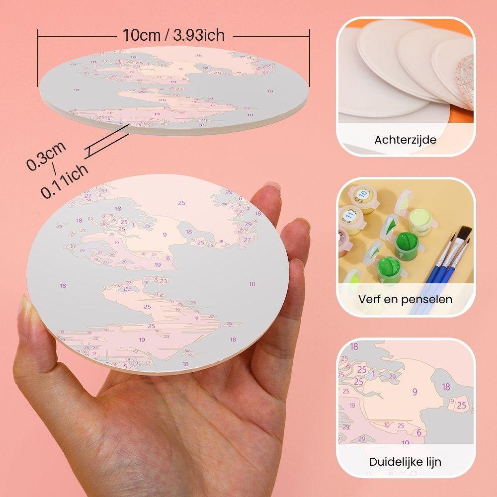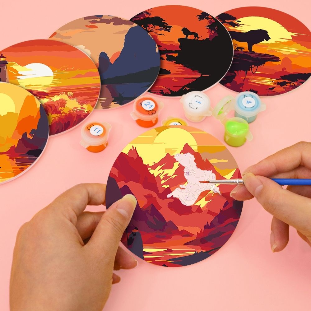 Schilderen op Nummer Onderzetters 15cm (6 stuks) - Zonsondergangscène