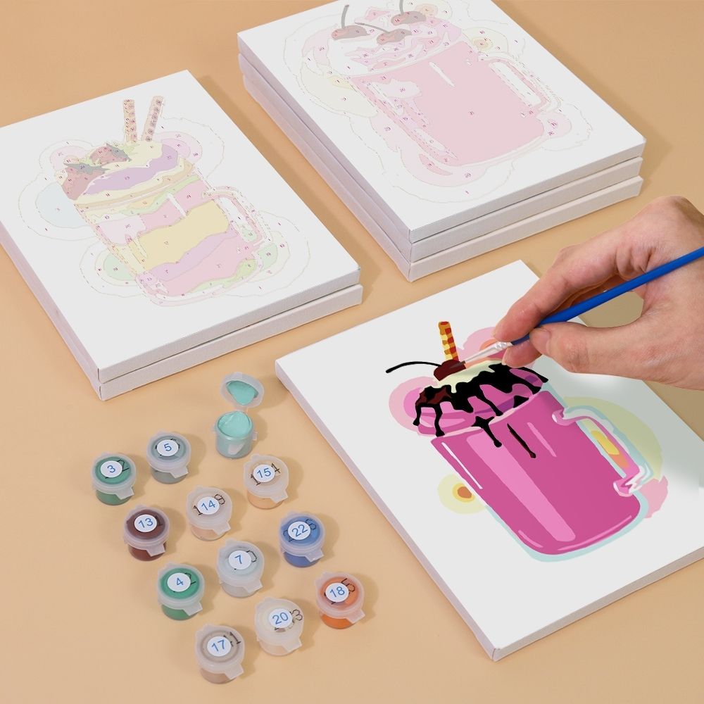 Ontdek het plezier van schilderen met onze Schilderen op nummer – Set van 6 doeken | Milkshakes. Elke set bevat zes themadoeken, voor-gemengde acrylverf en alle benodigde tools. Volg de genummerde gids om te genieten van een ontspannende hobby en prachtige kunstwerken te creëren die je met trots kunt tonen of cadeau doen.
