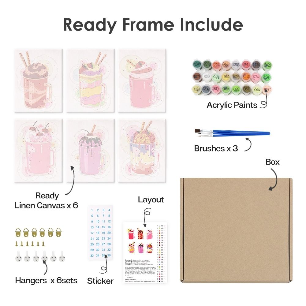 Schilderen op nummer – Set van 6 doeken | Milkshakes