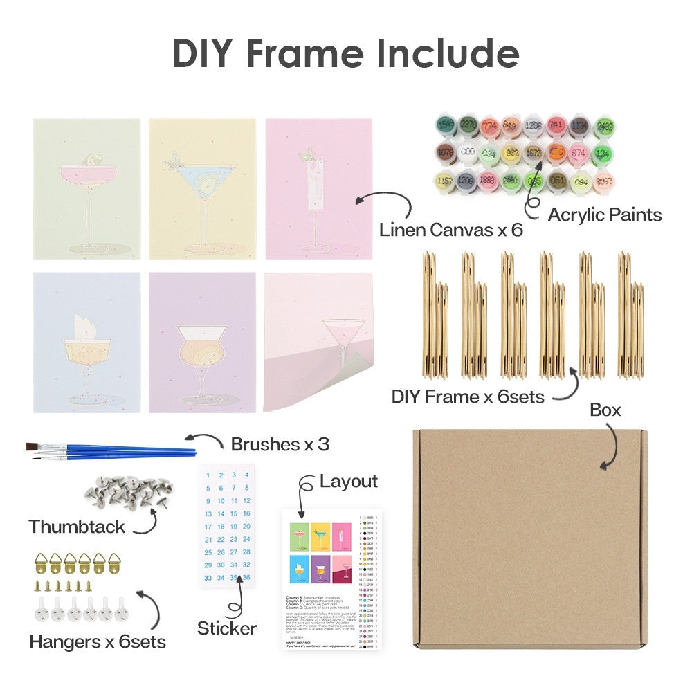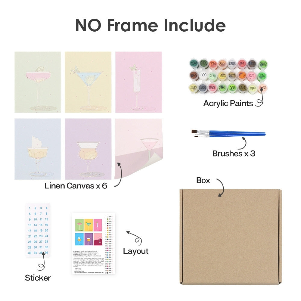 Ontdek het plezier van schilderen met onze Schilderen op nummer – Set van 6 doeken | Stijlvolle Cocktailglazen. Elke set bevat zes themadoeken, voor-gemengde acrylverf en alle benodigde tools. Volg de genummerde gids om te genieten van een ontspannende hobby en prachtige kunstwerken te creëren die je met trots kunt tonen of cadeau doen.