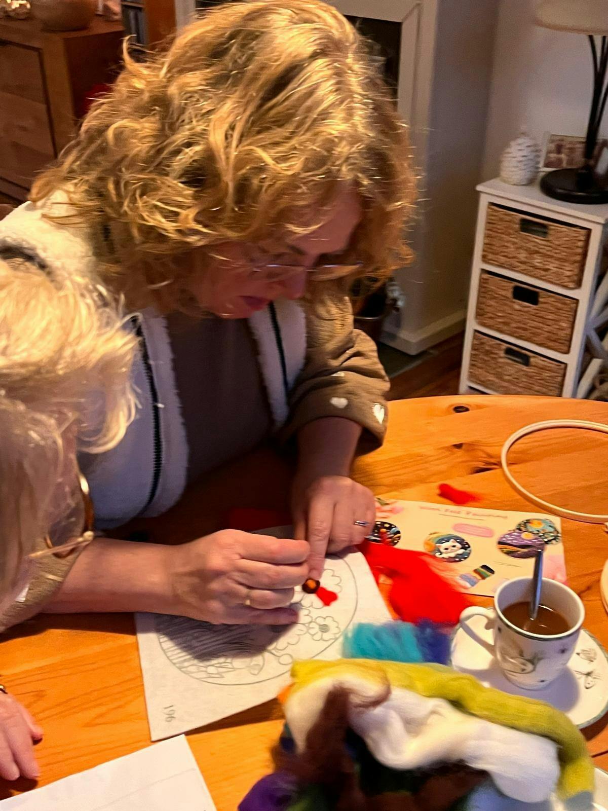 - 1 partij vervilte wol in verschillende kleuren in voldoende hoeveelheid om uw ontwerp te borduren