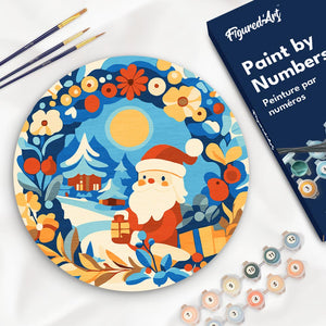 Schilderen op Nummer op Houten Schijf - Kerstman en bloemen