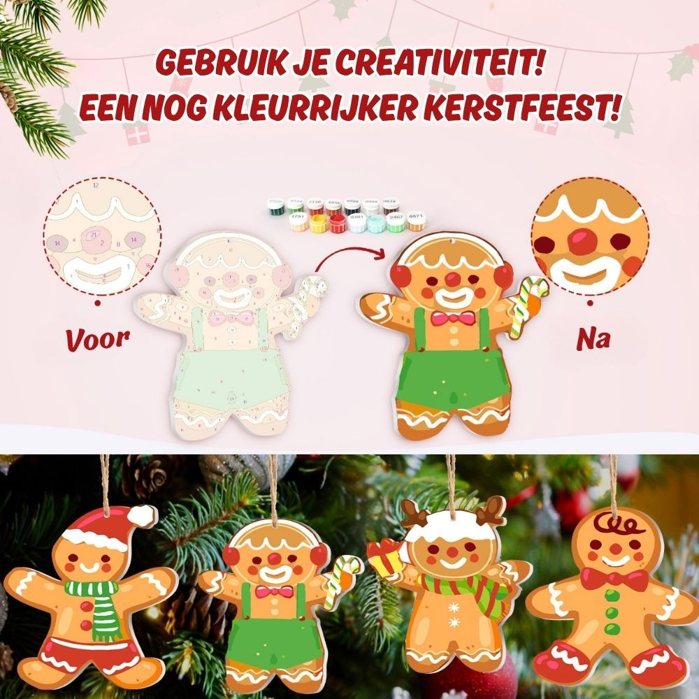 Kerstornamenten Schilderen op Nummers - Kit Peperkoek Vrienden
