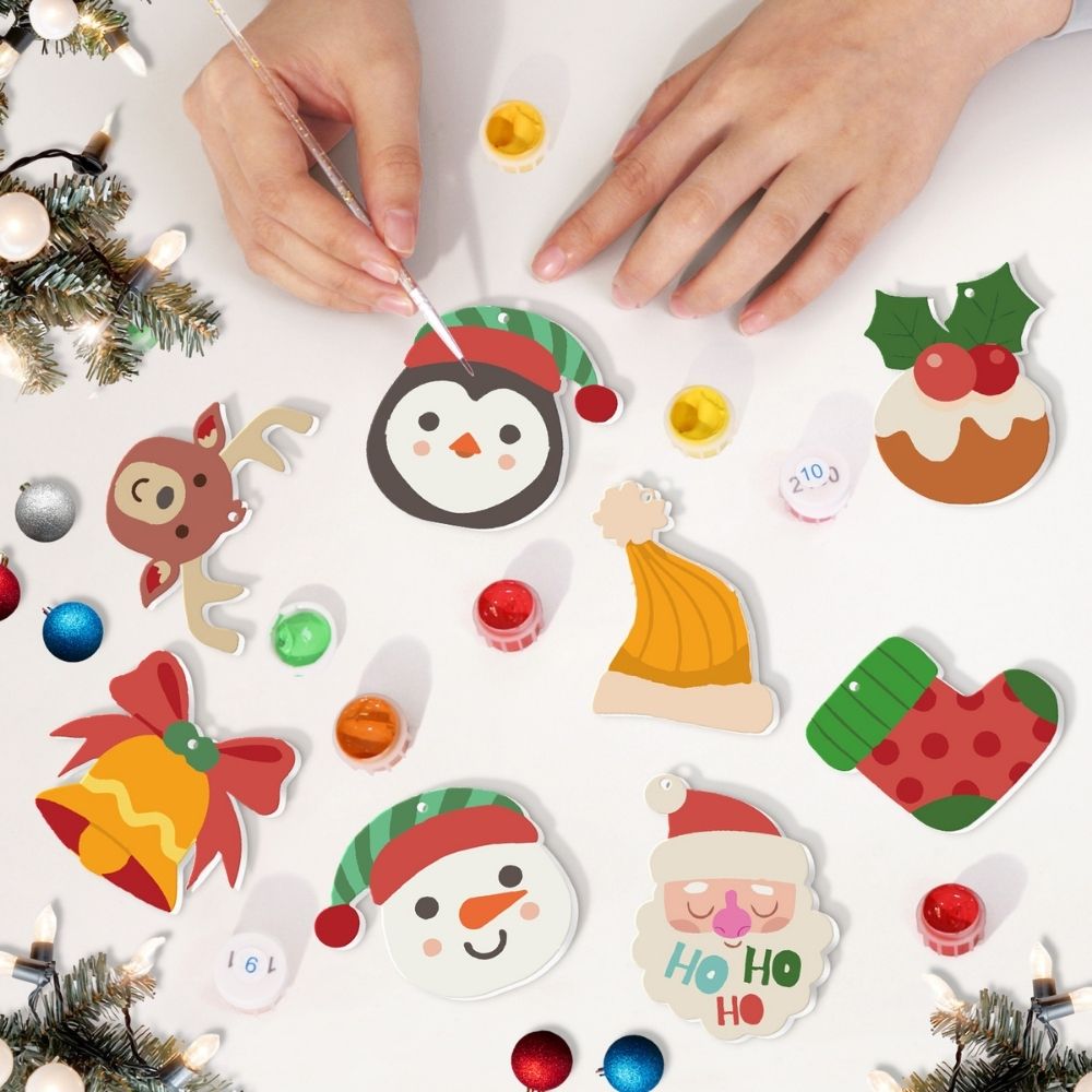 • Creatief plezier voor de feestdagen: Ontspan en schilder uw eigen unieke set kerstdecoraties.