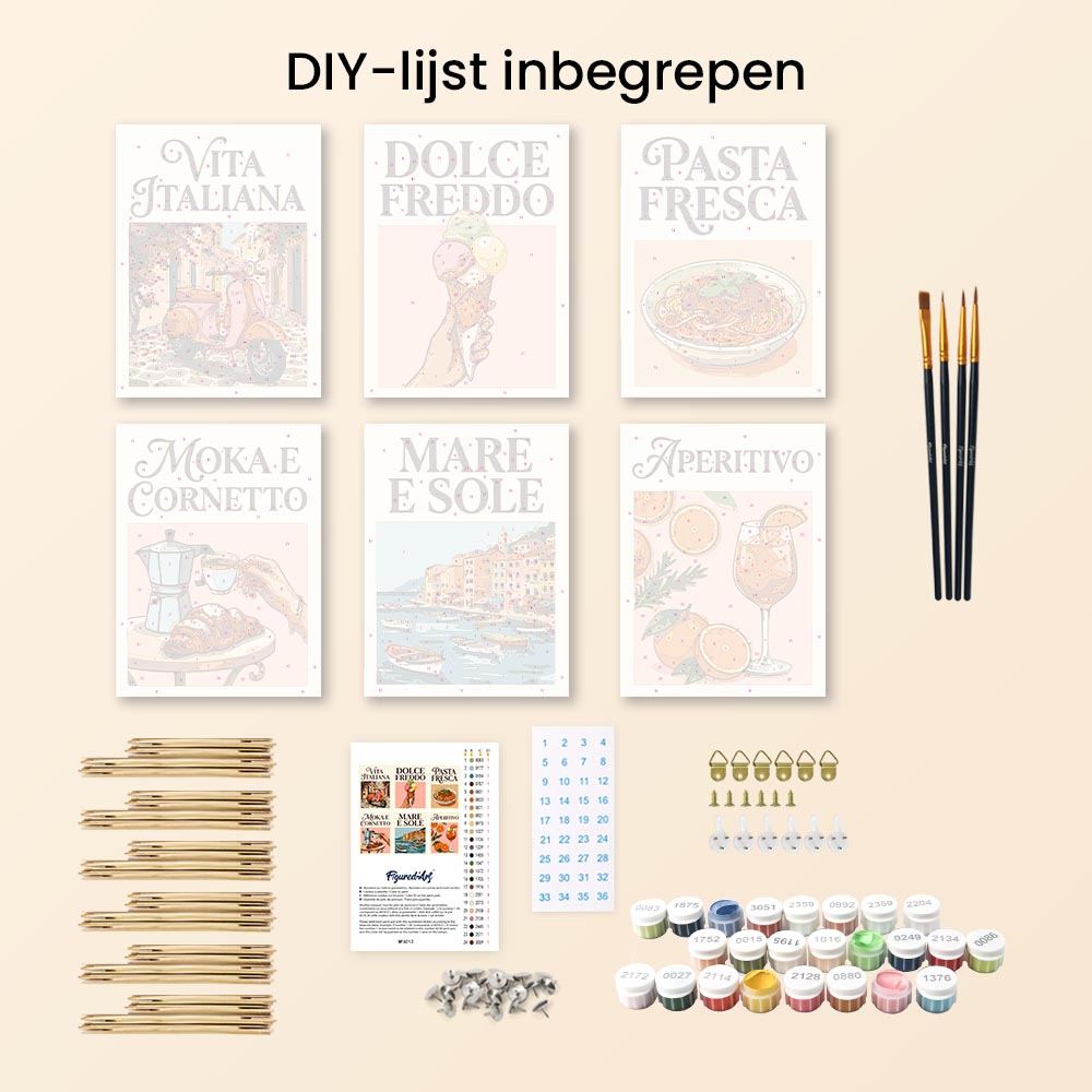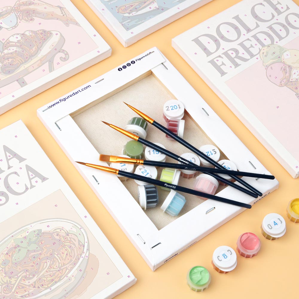 Ontdek je creativiteit met het Figured'Art Mini Schilderen op Nummer Set, inclusief kleine genummerde linnen doeken. Deze ontspannende en begeleide ervaring is geschikt voor iedereen, perfect om je artistieke kant te uiten, je huis te decoreren of iemand een creatief moment cadeau te doen.