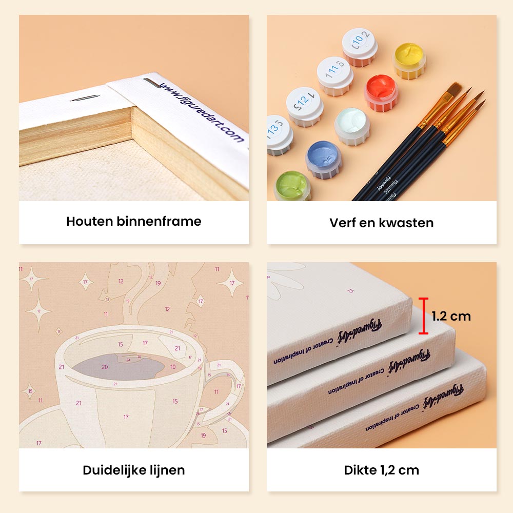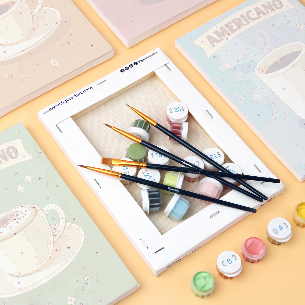 Ontdek je creativiteit met het Figured'Art Mini Schilderen op Nummer Set, inclusief kleine genummerde linnen doeken. Deze ontspannende en begeleide ervaring is geschikt voor iedereen, perfect om je artistieke kant te uiten, je huis te decoreren of iemand een creatief moment cadeau te doen.