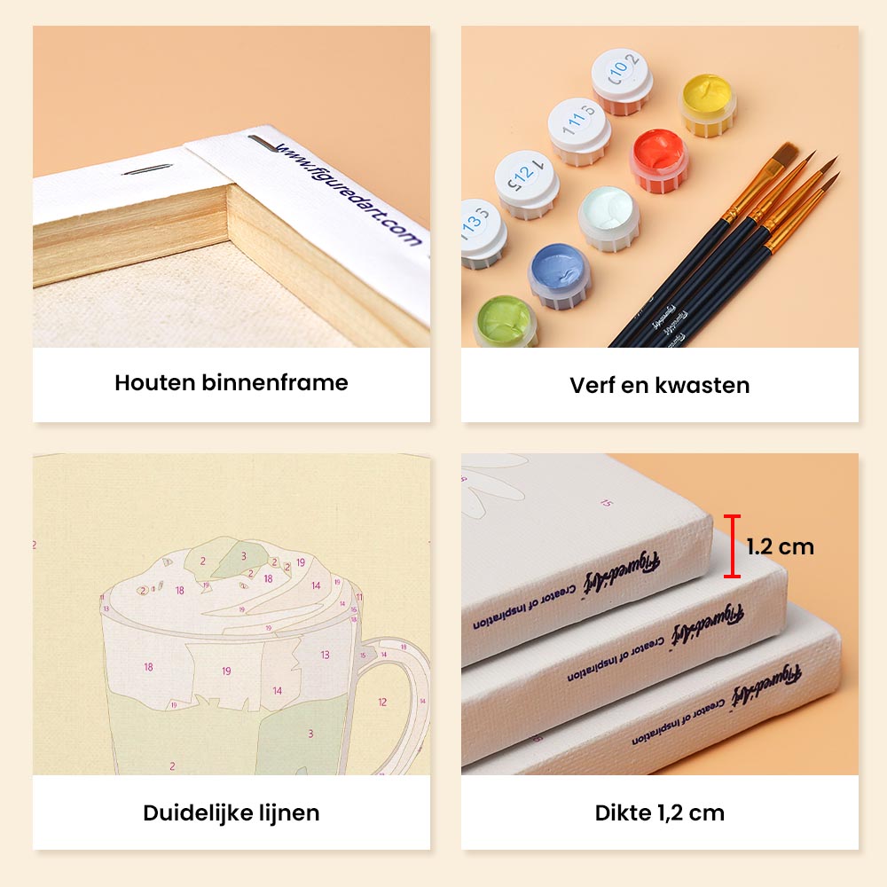 Ontdek je creativiteit met het Figured'Art Mini Schilderen op Nummer Set, inclusief kleine genummerde linnen doeken. Deze ontspannende en begeleide ervaring is geschikt voor iedereen, perfect om je artistieke kant te uiten, je huis te decoreren of iemand een creatief moment cadeau te doen.
