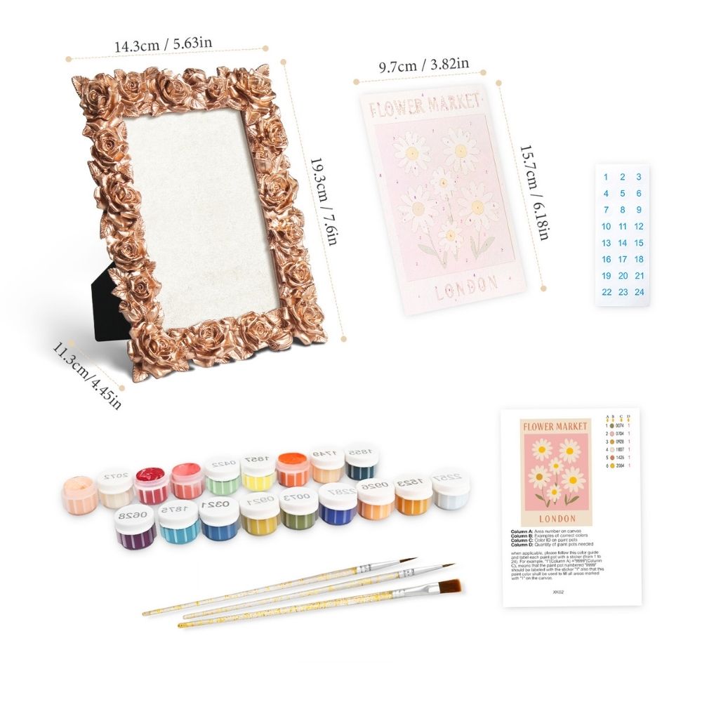 Ontdek je creativiteit met het Figured'Art Mini Schilderen op Nummer Set, inclusief een genummerd linnen doek met decoratieve lijst. Deze ontspannende en begeleide ervaring is geschikt voor iedereen, perfect om je artistieke kant te uiten, je huis te decoreren of iemand een creatief moment cadeau te doen.