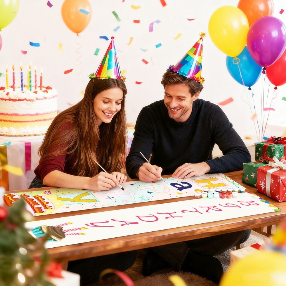 Decoreer je ingang op een unieke en vrolijke manier met deze levendige verjaardagsthema-decoraties! De set Schilderen op Nummer DIY Deur Banners - Leuke Slinger brengt kleur, plezier en persoonlijkheid in je feestdecoratie. Elk schilderen op nummers pakket bevat twee prachtig ontworpen banners (20×120 cm), perfect om ingangen, deuren en muren op te fleuren. Ideaal voor zowel binnen- als buitenruimtes, deze feestelijke banners voegen direct charme toe aan elk huis, tuin of vierlocatie.