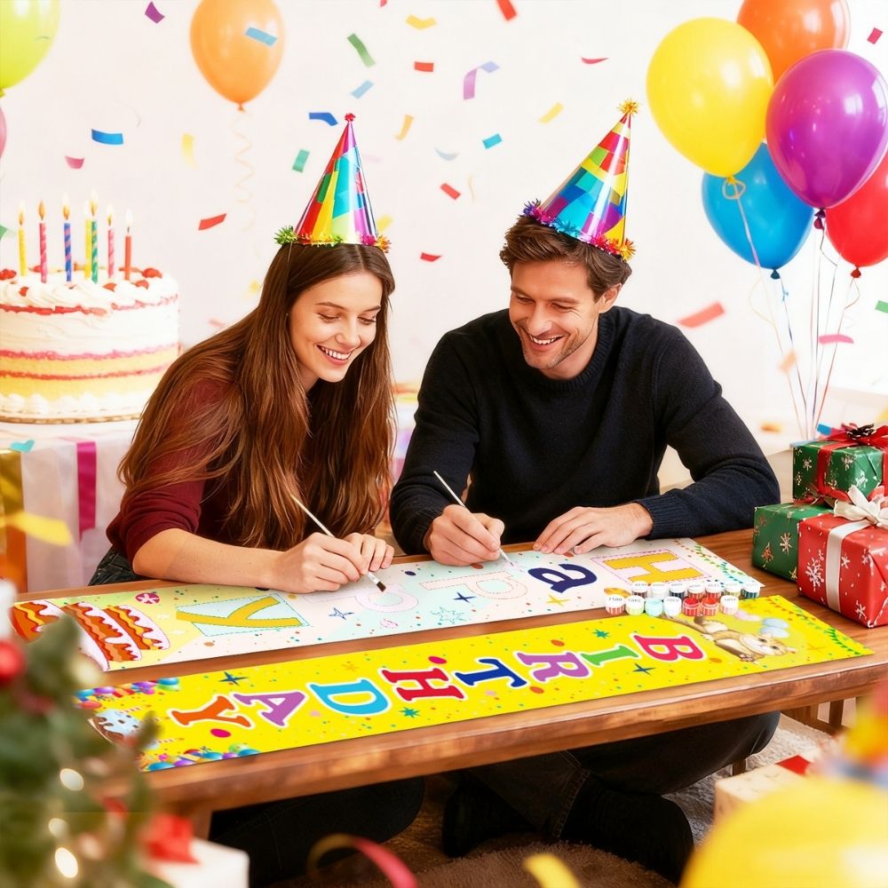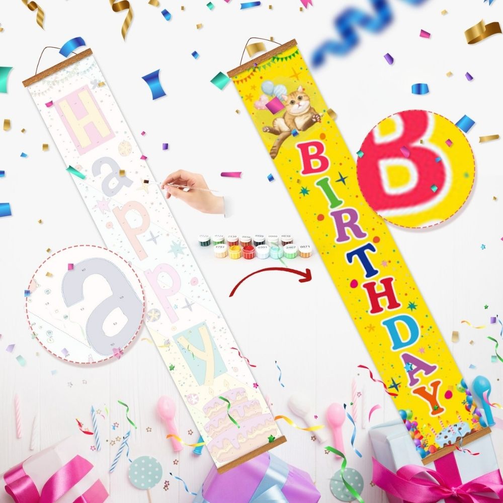 Maak je verjaardagsviering onvergetelijk met kleur, creativiteit en gepersonaliseerde decoratie, penseelstreek voor penseelstreek met dit schilderen op nummer DIY-deurbannerpakket!