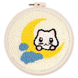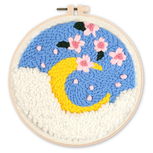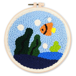 De punch needle heeft specifiek materiaal nodig om reliëfborduurwerk te maken. Hiervoor biedt Figured'art kant-en-klare punch needle pakket voor beginners en liefhebbers, bestaande uit een linnen doek van 26 cm x 26 cm bedrukt met het te maken ontwerp, voldoende kwaliteitsgaren van wol om uw ontwerp te borduren, een magische naald speciaal ontworpen voor de punchnaald, een rond houten frame met een diameter van 20 cm, een naaldinrijger en een handleiding om u te helpen bij het maken van uw borduurwerk.