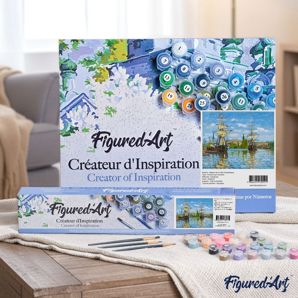 2) Je ontvangt een compleet pakket met genummerd canvas, genummerde potten verf, penselen en een foto van het verwachte resultaat om jou te gidsen. Laat de reis beginnen!