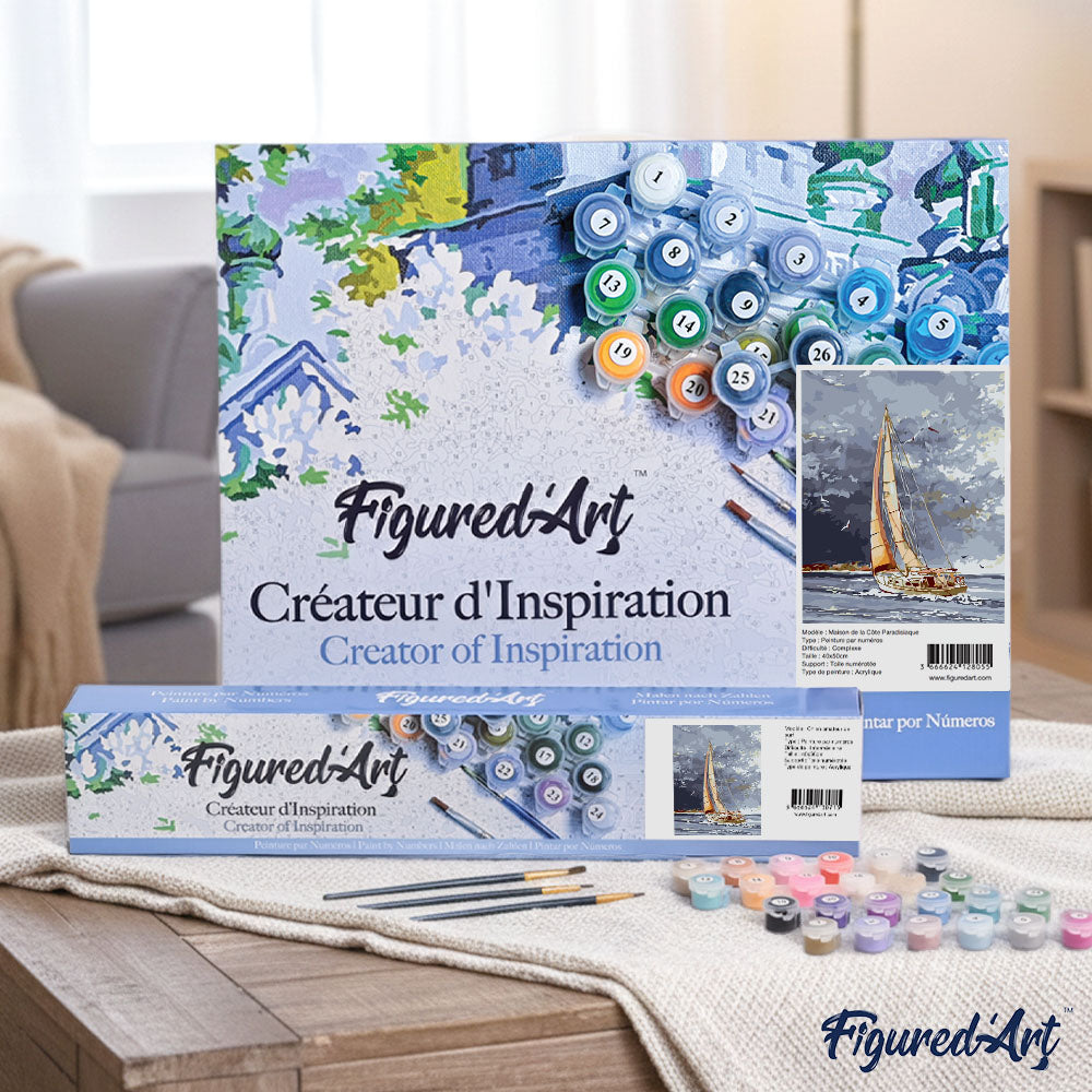 2) Je ontvangt een compleet pakket met genummerd canvas, genummerde potten verf, penselen en een foto van het verwachte resultaat om jou te gidsen. Laat de reis beginnen!