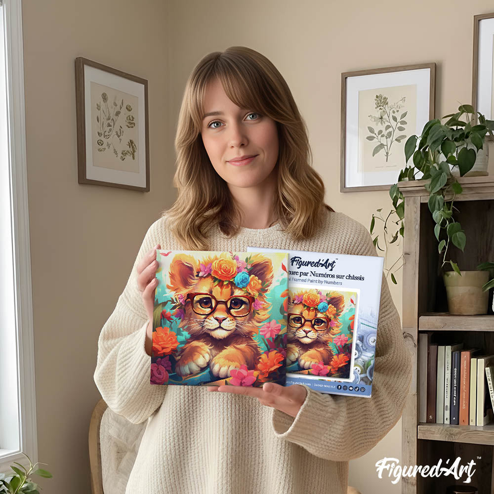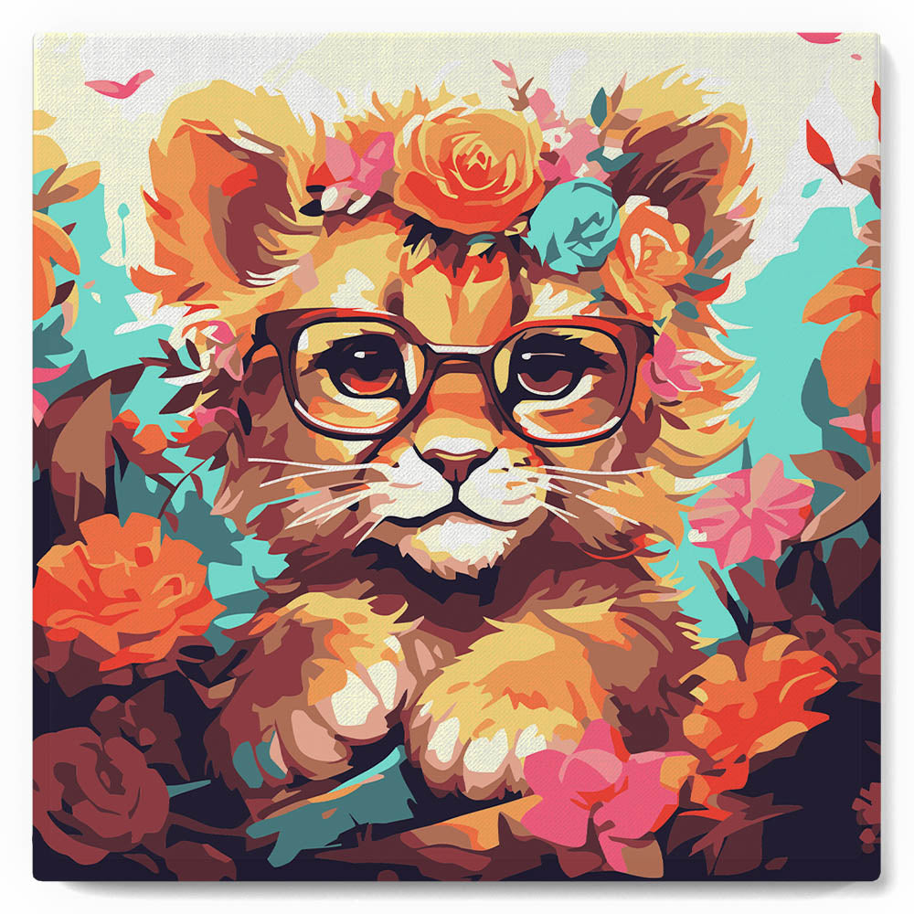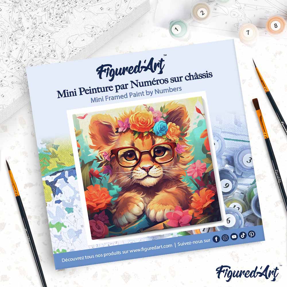 Mini Schilderen op Nummer met Frame - Fantasie leeuwenwelp en bloemen
