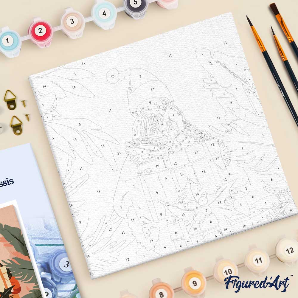 2) Je ontvangt een compleet pakket met genummerd canvas, genummerde potten verf, penselen en een foto van het verwachte resultaat om jou te gidsen. Laat de reis beginnen!