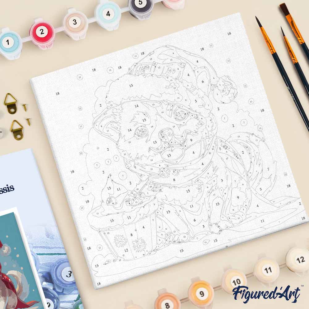 2) Je ontvangt een compleet pakket met genummerd canvas, genummerde potten verf, penselen en een foto van het verwachte resultaat om jou te gidsen. Laat de reis beginnen!