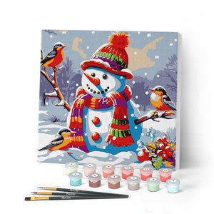 Mini Schilderen op Nummer met Frame - Sneeuwpop in Sneeuwbol
