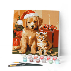 Mini Schilderen op Nummer met Frame - Kerstkat en -hond